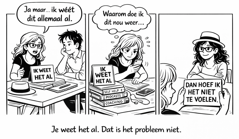 Wat als het probleem niet is, dat jij het niet doet… maar dat je dondersgoed weet waarom je het niet doet — en daar nog niet naar wil kijken?